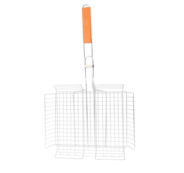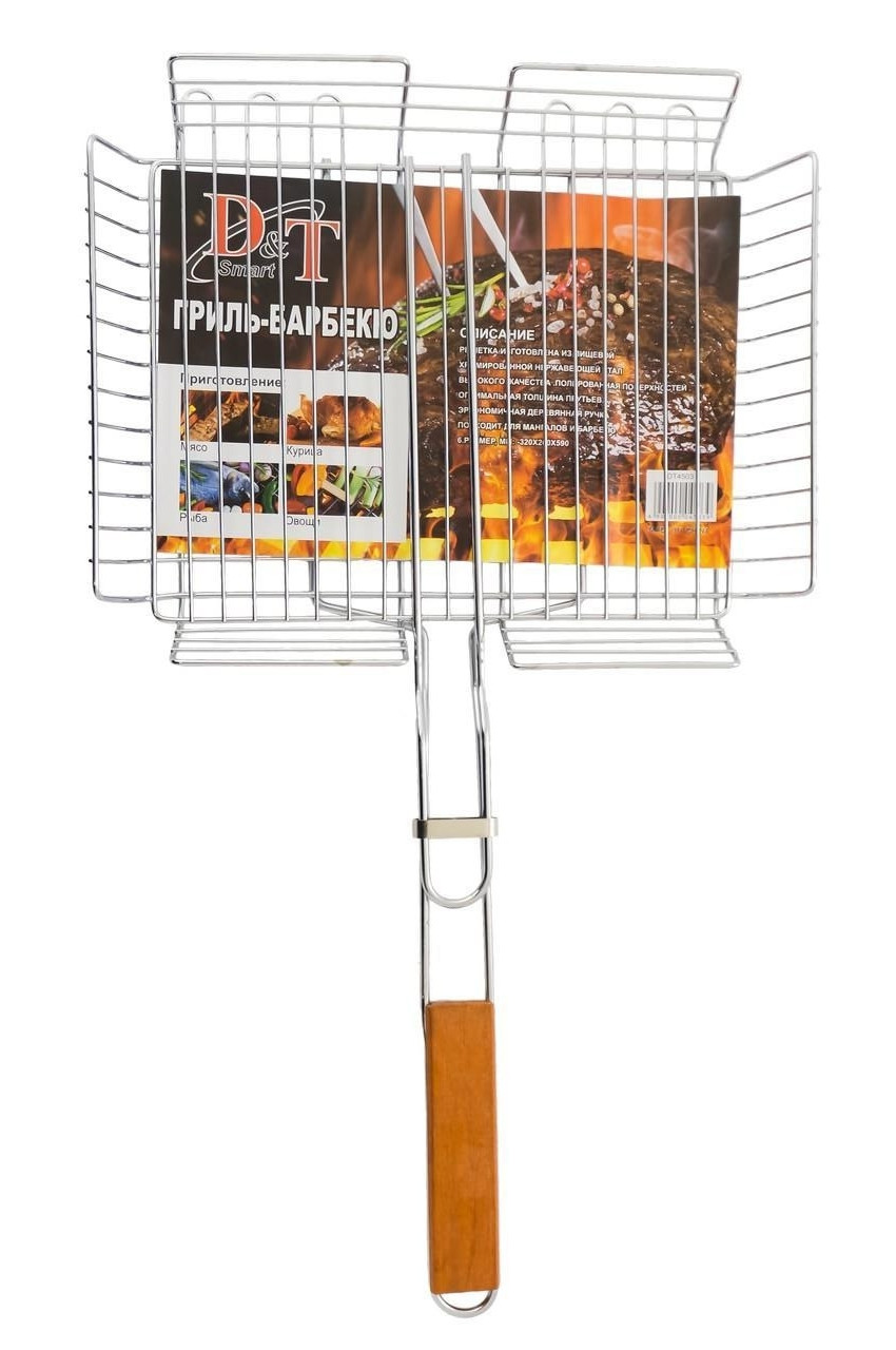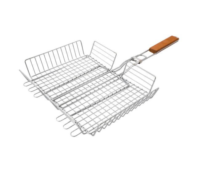 Решітка-гриль виготовлена з високоякісної сталі з гальванічним покриттям. Використовується для приготування страв із м'яса (стейки, гамбургери та ін.), риби, овочів. Ручка обладнана дерев'яною вставкою, яка надає ручці жорсткості та допомагає легко перевертати решітку, не обпікаючи рук. Крім цього в решітки для барбекю передбачена ще й можливість регулювання висоти решітки для продуктів різної товщини, а також використання надійного фіксатора, який позбавить неприємних несподіванок під час її перевертання.